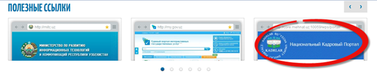 На главной странице сайта в разделе Полезные ссылки нажать на баннер Национальный Кадровый портал